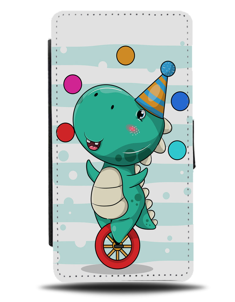Dinosaur Juggling On Unicycle Flip Wallet Phone Case Juggler Juggle Balls Kids BJ46