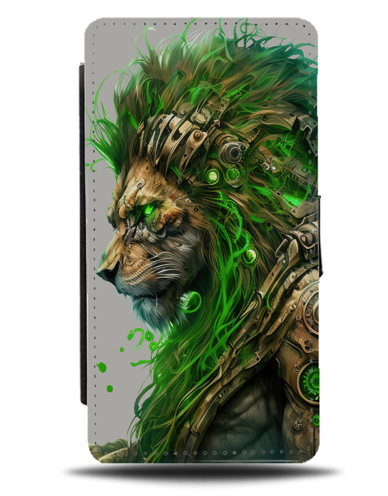 Cyberpunk Green Lions Face Flip Wallet Phone Case Lion Armour Warrior Animal BJ98