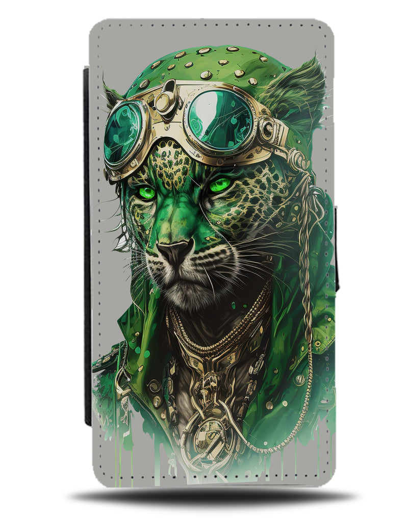 Cyberpunk Leopard Pilot Flip Wallet Phone Case Pilots Leopards Design Helmet BK03