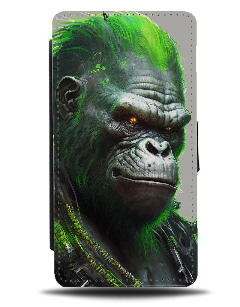 Cyberpunk Silverback Gorilla Face Flip Wallet Phone Case Silver Back Gorillas BK06