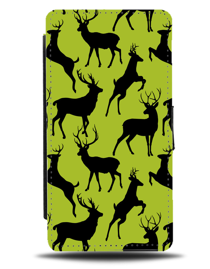 Deer Pattern Flip Wallet Phone Case Deers Silhouette Shapes Shape Lime Green BK28