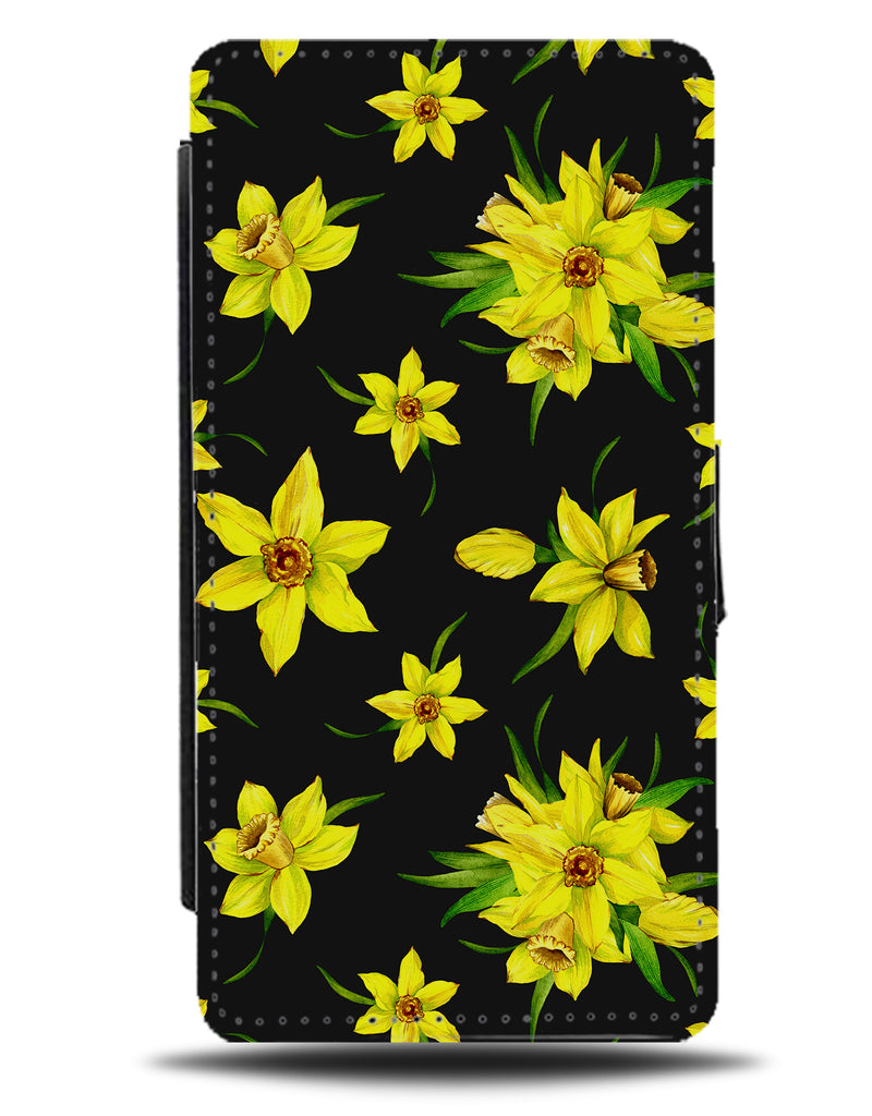 Daffodils Flip Wallet Phone Case Daffodil Flowers Flower Narcissuses Black Yellow BQ82