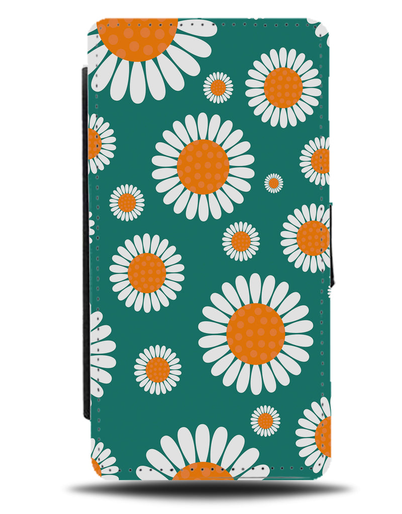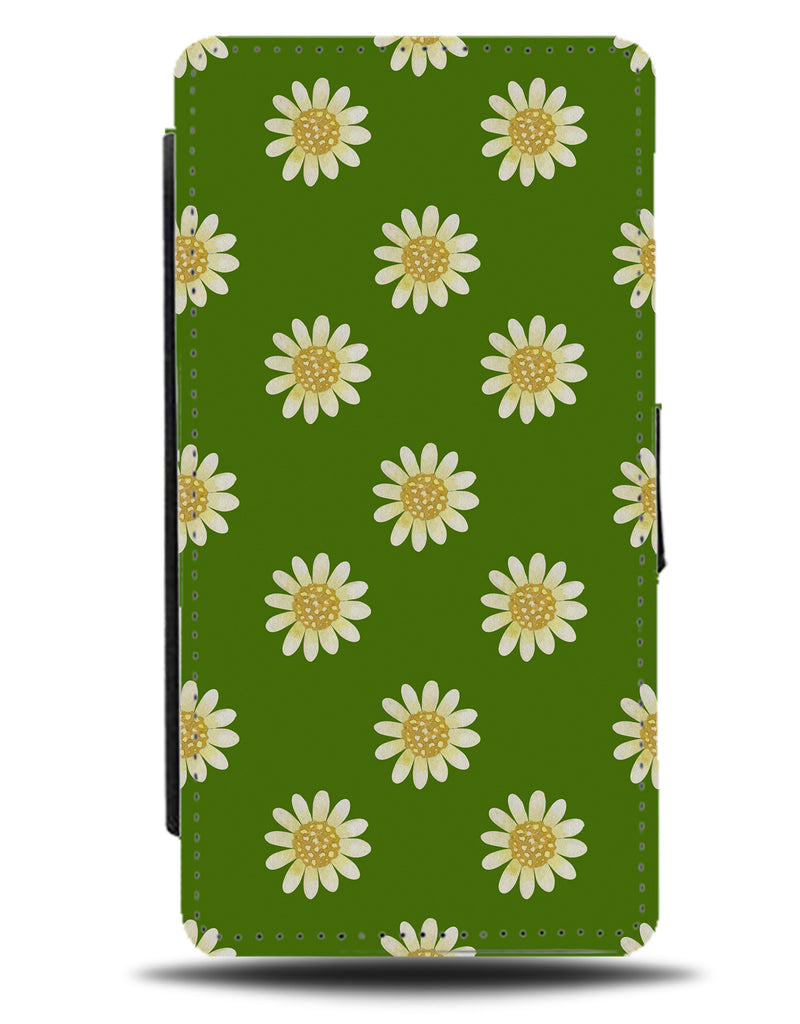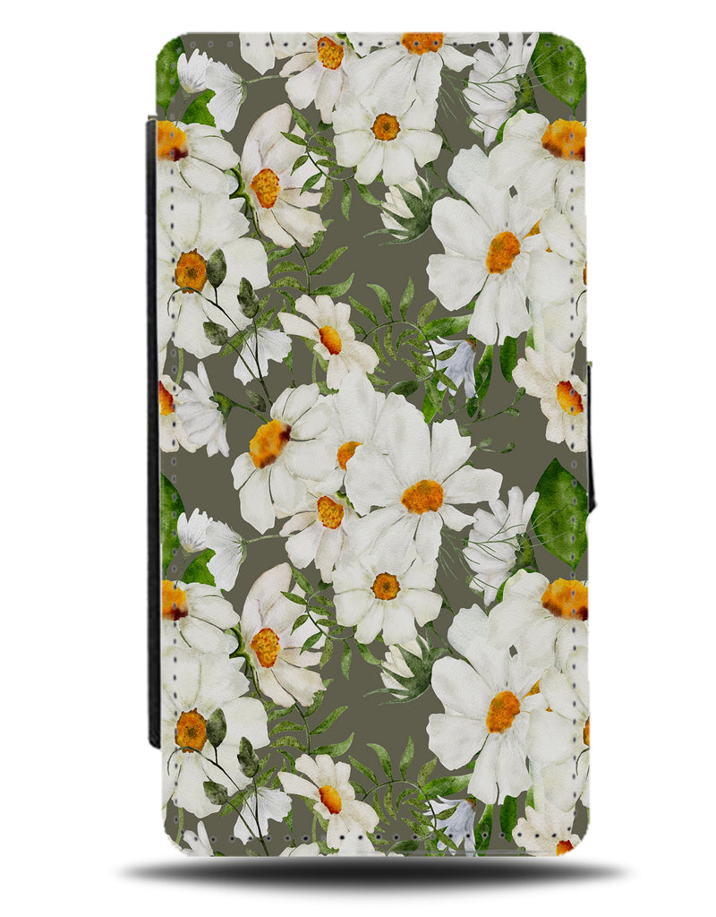 Dark Green Large Daisy Flowers Flip Wallet Phone Case Flower Daisies Floral Q630G
