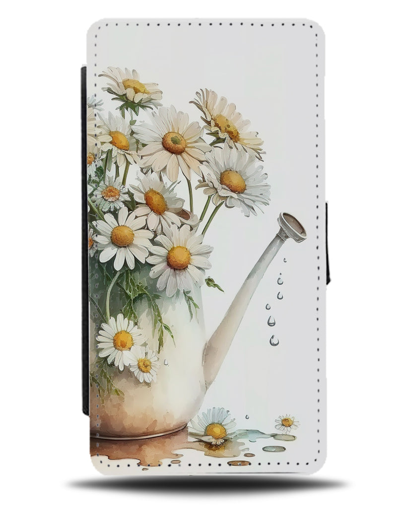 Daisy Watering Can Flip Wallet Phone Case Flowers Cans Water Daises Floral Girly Q464F