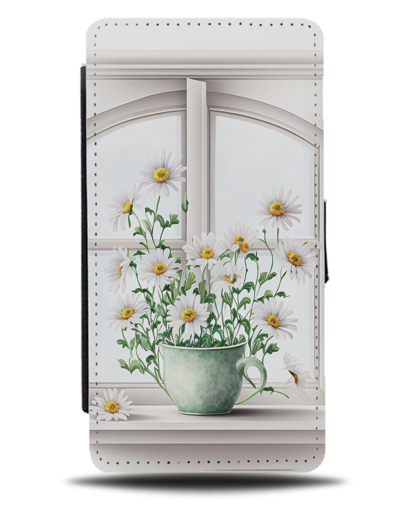 Daisy Flower Pot On Window Shelf Flip Wallet Phone Case Windowshelf Daisies Pots Q464H