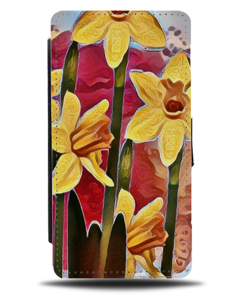 Daffodil Airbrush Art Print Flip Wallet Phone Case Daffodils St Davids Welsh Q629A