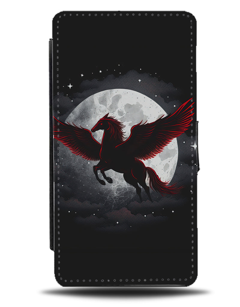 Dark Red Pegasus Flying Flip Wallet Phone Case Horse Majestic Full Moon Creature Q826A