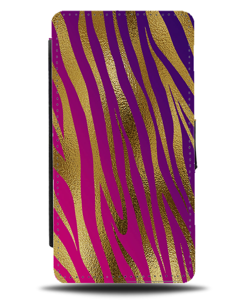 Dark Purple and Gold Zebra Stripes Flip Wallet Phone Case Zebras Animals Golden Q832A