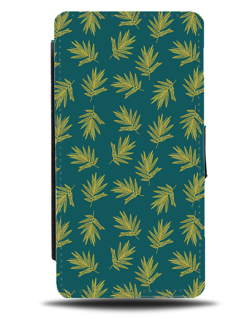Dark Green And Golden Leaves Flip Wallet Phone Case Leaf Palm Trees Tropical Q888F