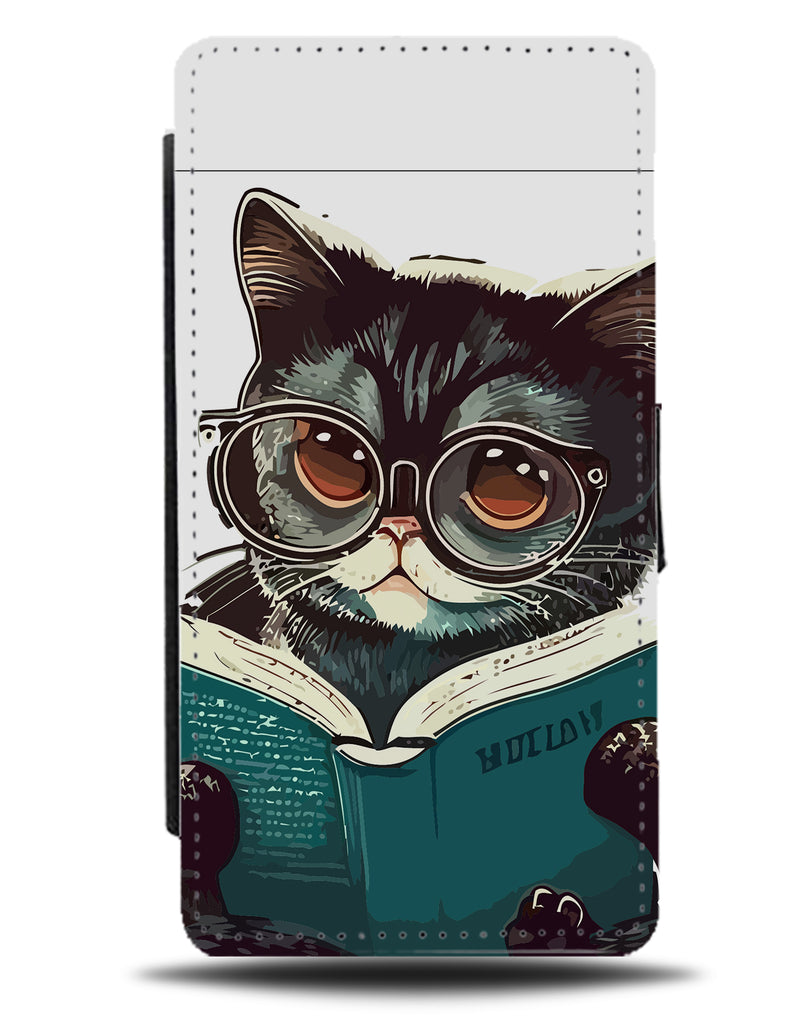 Clever Cat Flip Wallet Phone Case Cats Bookworm Book Smart Student Studying Geek BH26