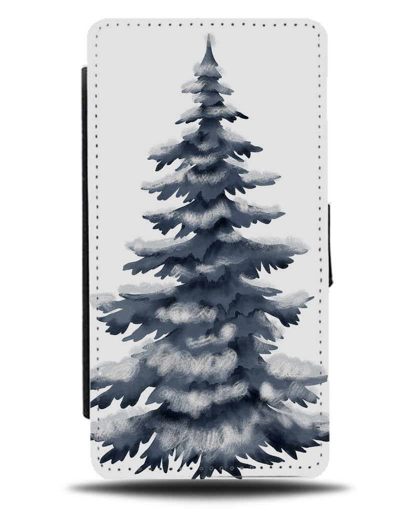 Christmas Tree With Snow On The Leaves Flip Wallet Phone Case Snowy Branches Grey BL45