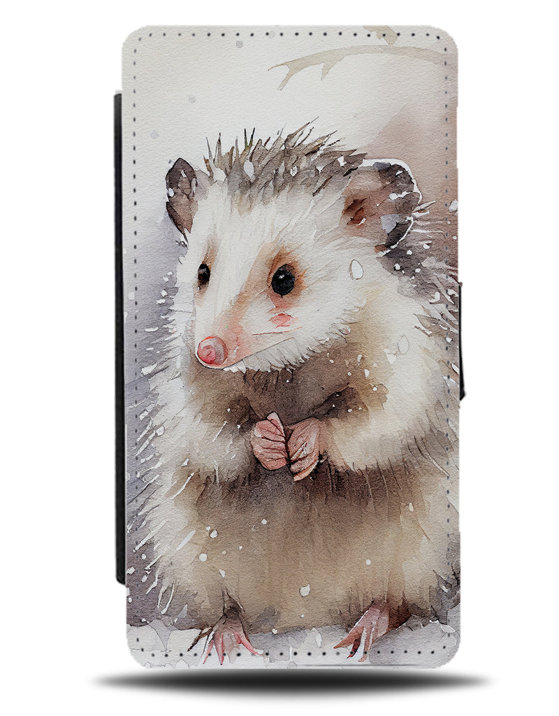 Christmas Hedgehog Face Watercolour Flip Wallet Phone Case Hedgehogs Hedge Hog BW95