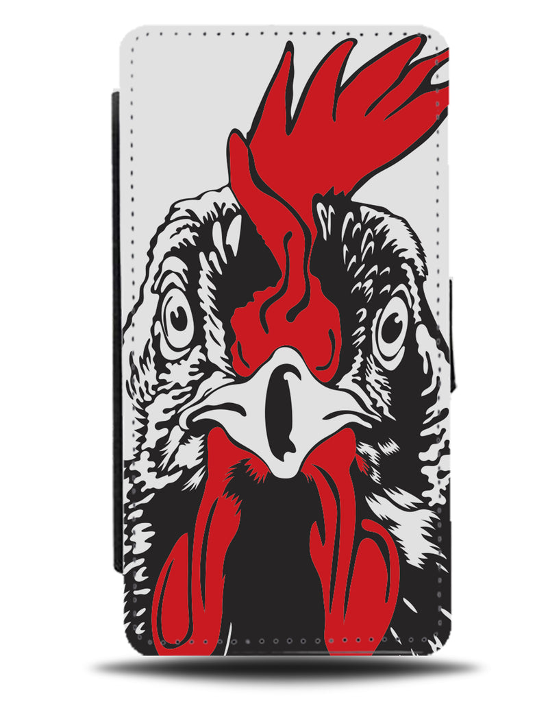 Cockerel Face Flip Wallet Phone Case Red Roosters Chicken Head Funny Rooster Farm Q476
