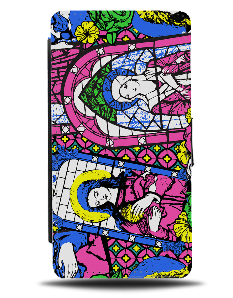 Church Stained Glass Windows Design Flip Wallet Phone Case Stain Look Churches Q583