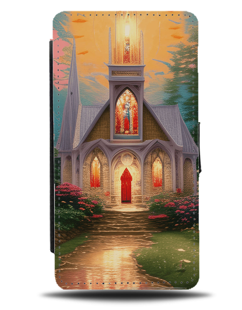 Church Painting Print Flip Wallet Phone Case Churches Building Structure Art Q584C