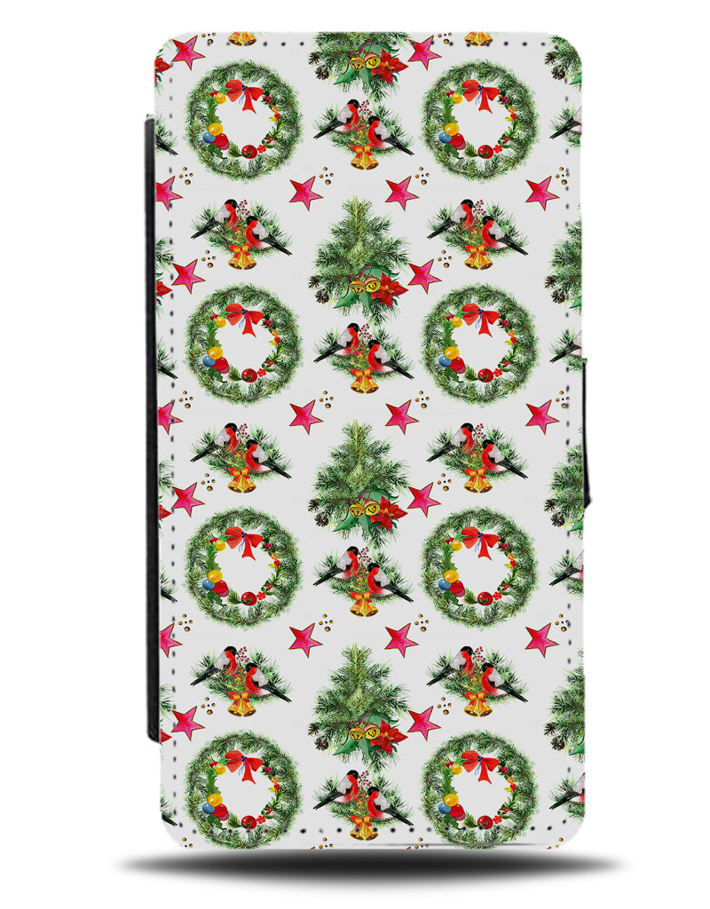 Christmas Wreath Flip Wallet Phone Case Wreaths Decor Holly Style Decorations Q859