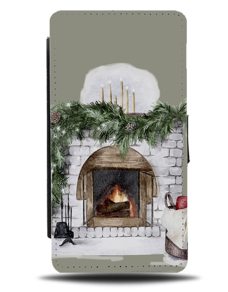 Christmas Fireplace Flip Wallet Phone Case Fire Place Chimney Victorian Style Q905C
