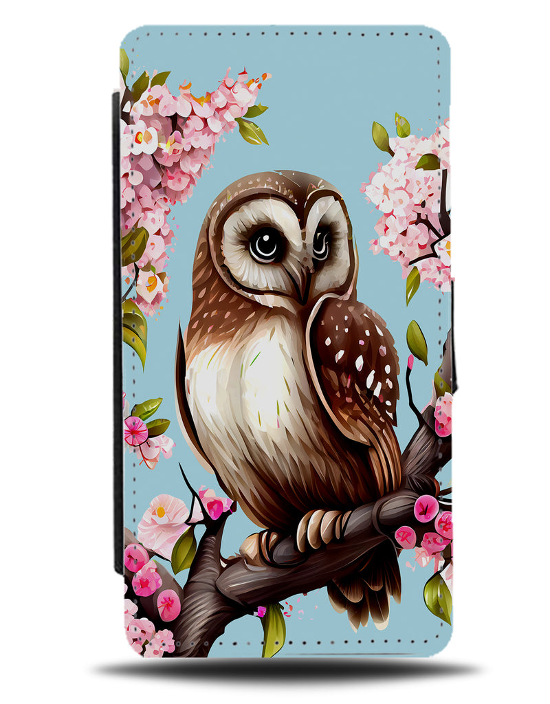 Cartoon Owl On Cherry Blossom Tree Branch Flip Wallet Phone Case Branches Owls BR56