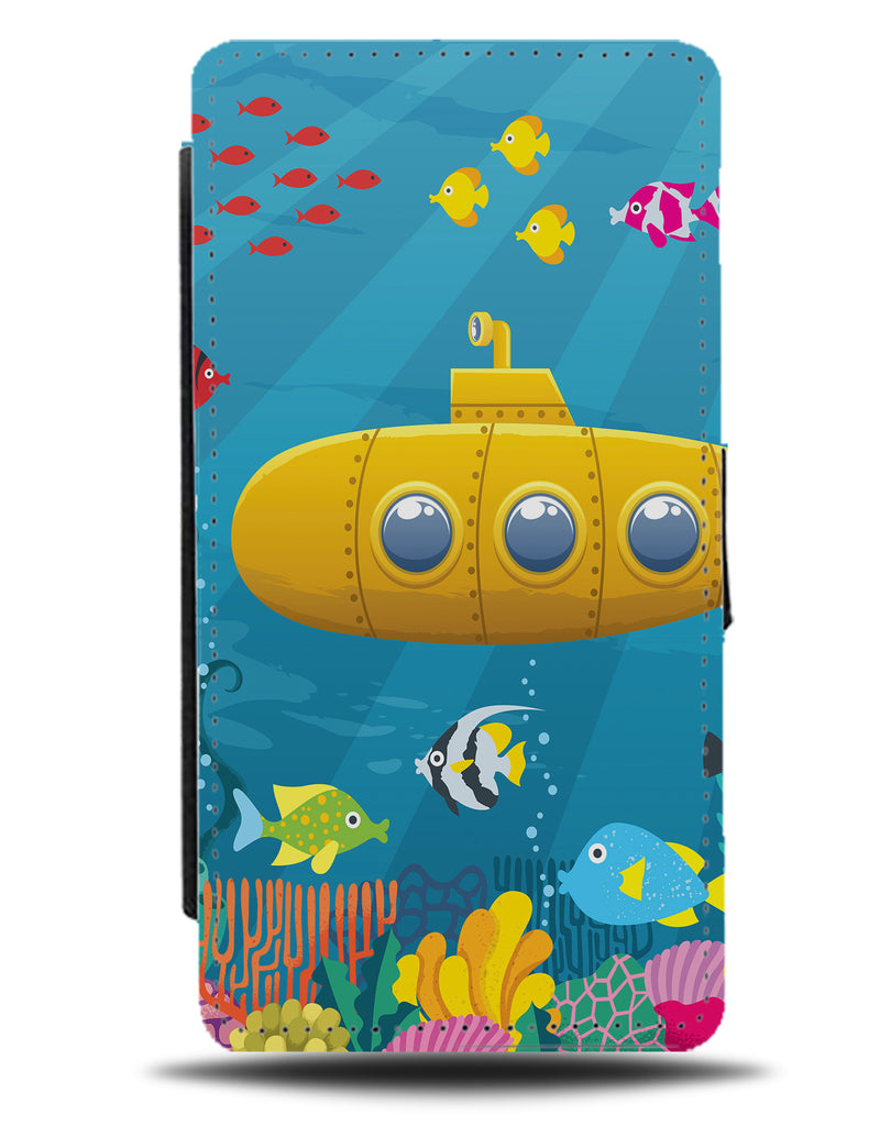 Cartoon Underwater Submarine Flip Wallet Phone Case Submarines Ocean Yellow Boat BU43