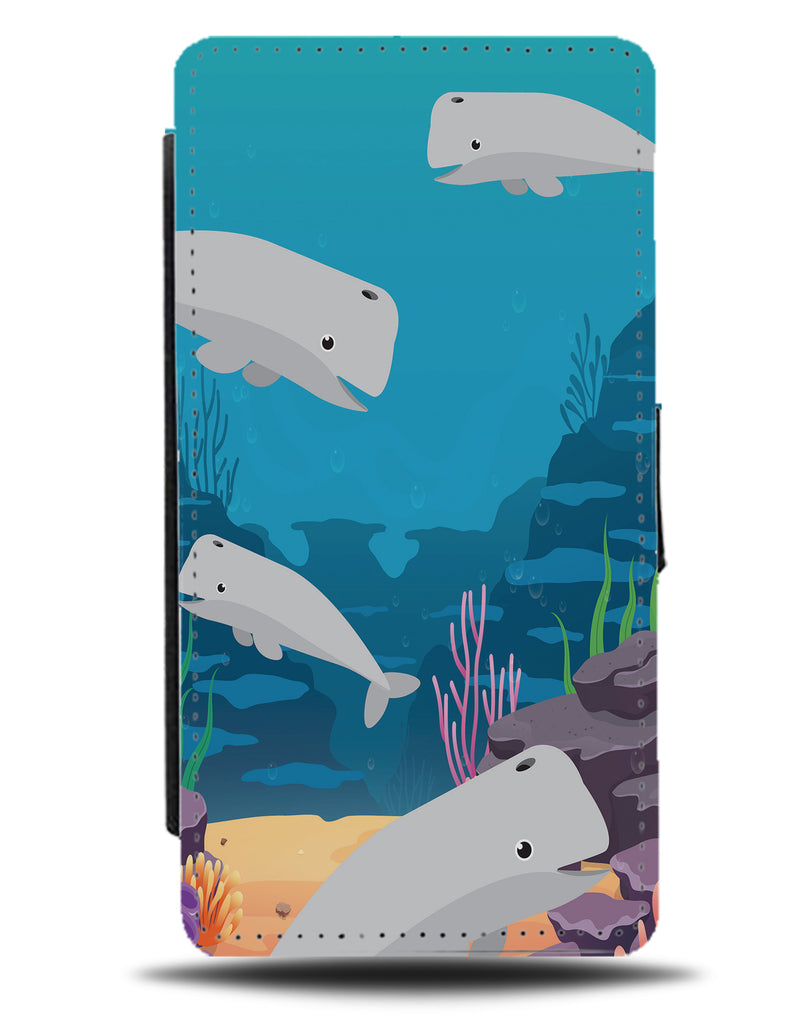 Cartoon Sperm Whales Flip Wallet Phone Case Whale Fish Ocean Sea Underwater Coral BU79