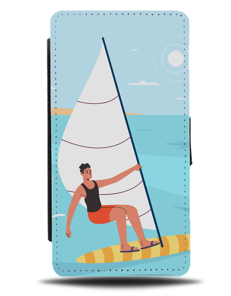 Cartoon Windsurfing Flip Wallet Phone Case Wind Surfing Windsurfer Surfer Water BV80