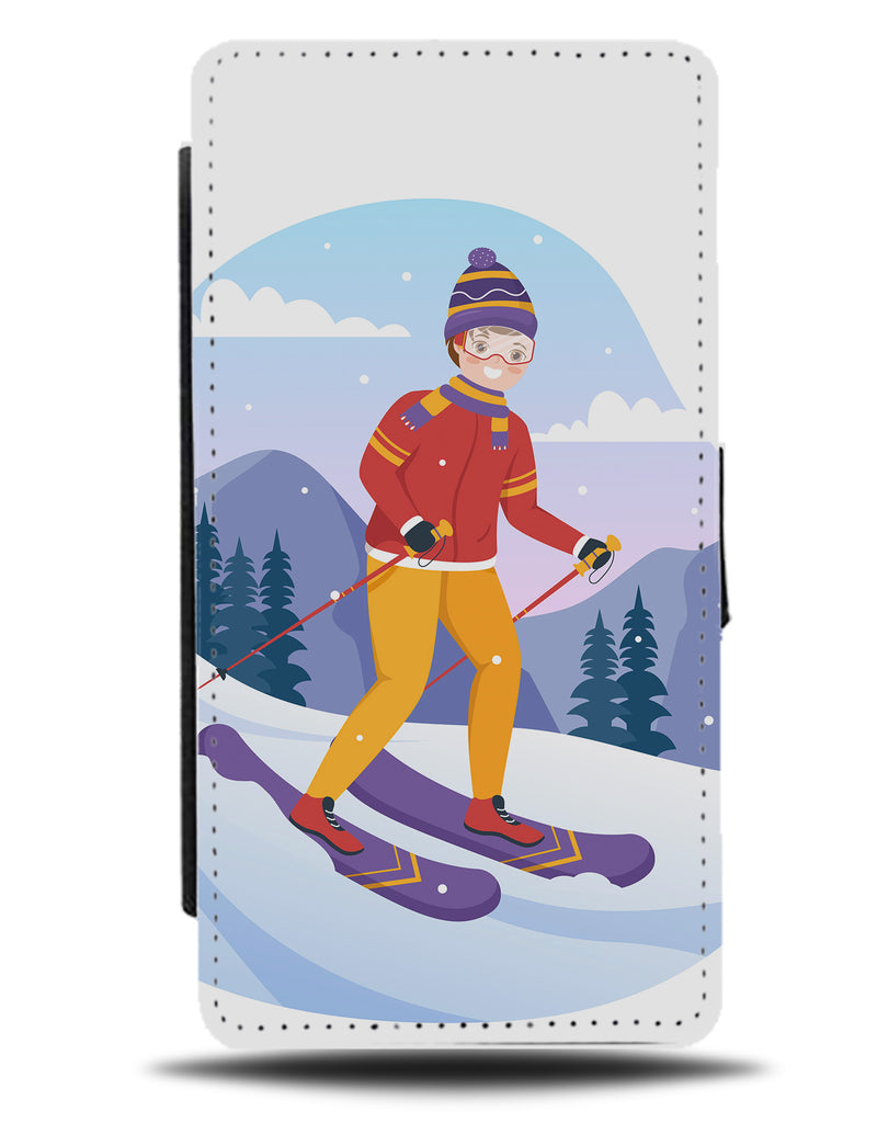 Cartoon Male Skier Flip Wallet Phone Case Men Mens Skiing Ski Resort Ski's Boys Q458