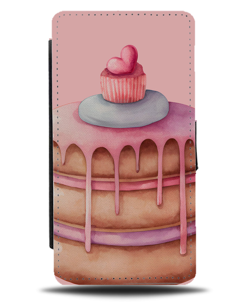 Cherry Tiered Cake Dessert Flip Wallet Phone Case Cakes Cherries Raspberry Pink Q899D