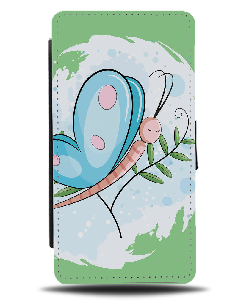 Blue Butterfly Flip Wallet Phone Case Cute Simplistic Butterfly's Wings On Tree BP58