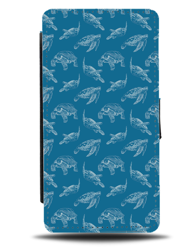 Blue Sea Turtle Flip Wallet Phone Case Multiple Turtles White Drawing Of Ocean BV27