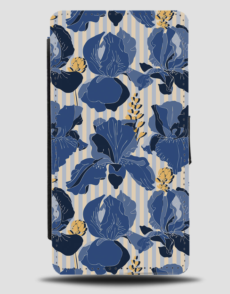 Blue Iris Flowers Flip Wallet Phone Case Floral Flower Coloured Pattern Iris's Q544
