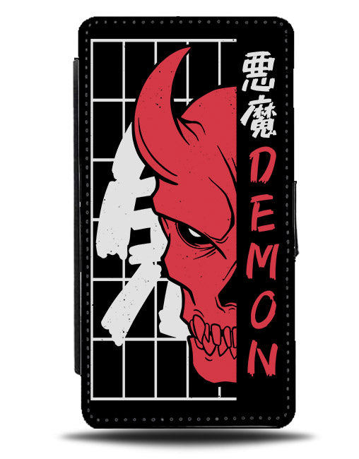 Scary Demon Skull Flip Wallet Phone Case Red Oni Skeleton Head Face Horns Horn M560