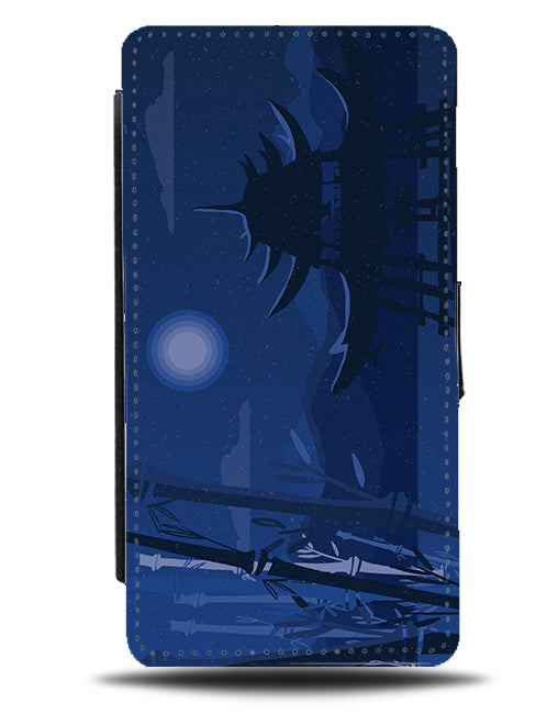 Shinto Japanese Scene Flip Wallet Phone Case Moonlight Japan Shrine Bamboo House M715