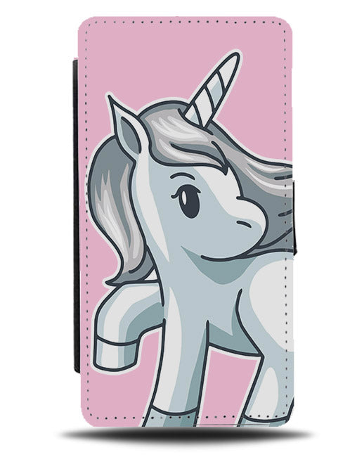 Silver Unicorn Cartoon Flip Wallet Phone Case Childrens Childs Grey Coloured Pink M719