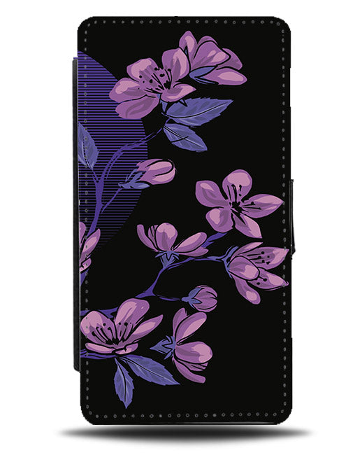Retro Cherry Blossom Flowers Flip Wallet Phone Case Flower Japanese Purple Leaves M887
