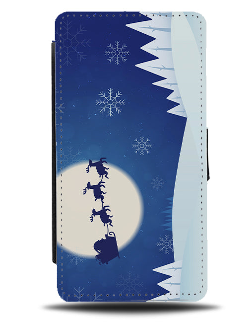 Santa Sleigh Flip Wallet Phone Case Santas Riding Moon Silhouette Snow Snowing M922