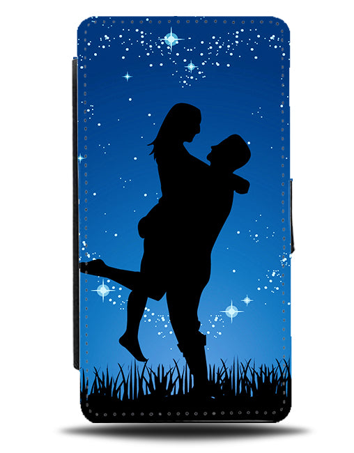 Romantic Flip Wallet Phone Case Romance Couple Relationship Stars Silhouette Hug MA97