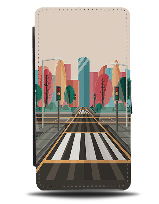 Zebra Crossing Flip Wallet Phone Case Traffic Lights City Street Cross Cartoon P032