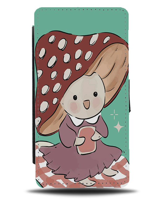 Cartoon Mushroom Lady Flip Wallet Phone Case Mushrooms Fairytale Picnic Woman P218
