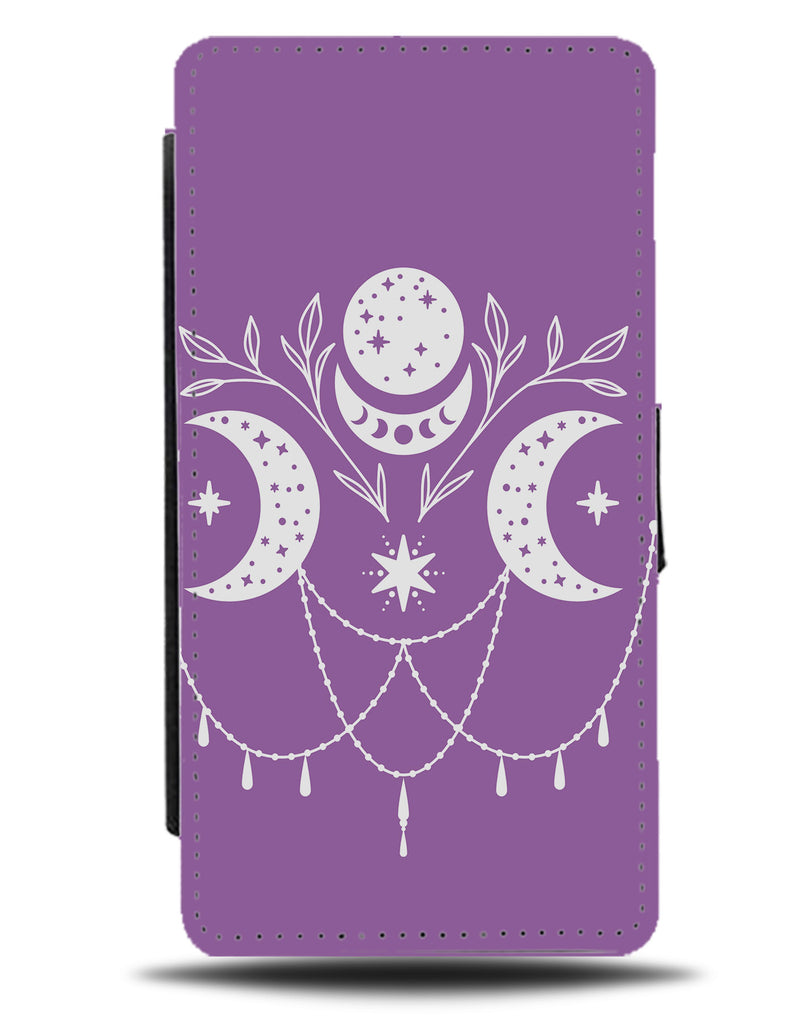 White and Purple Mystical Moth Moon Flip Wallet Phone Case Moths Moons Mystics P333A