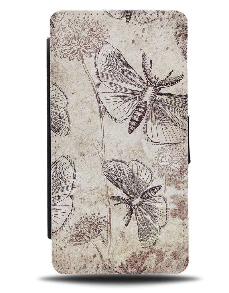 Vintage Moths Flip Wallet Phone Case Moth Wings Wing Paper Papers Style Old P385A