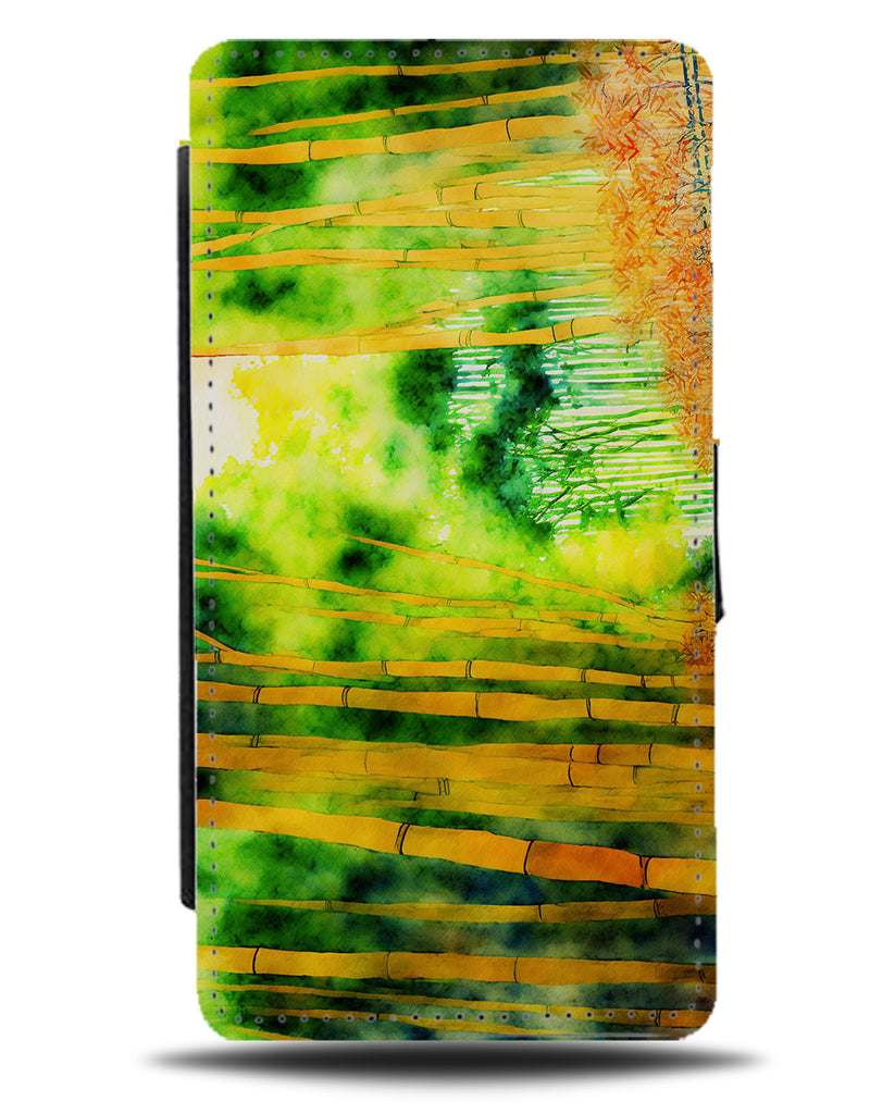 Green Bamboo Watercolour Painting Flip Wallet Phone Case Bamboos Wildlife Forest P253C