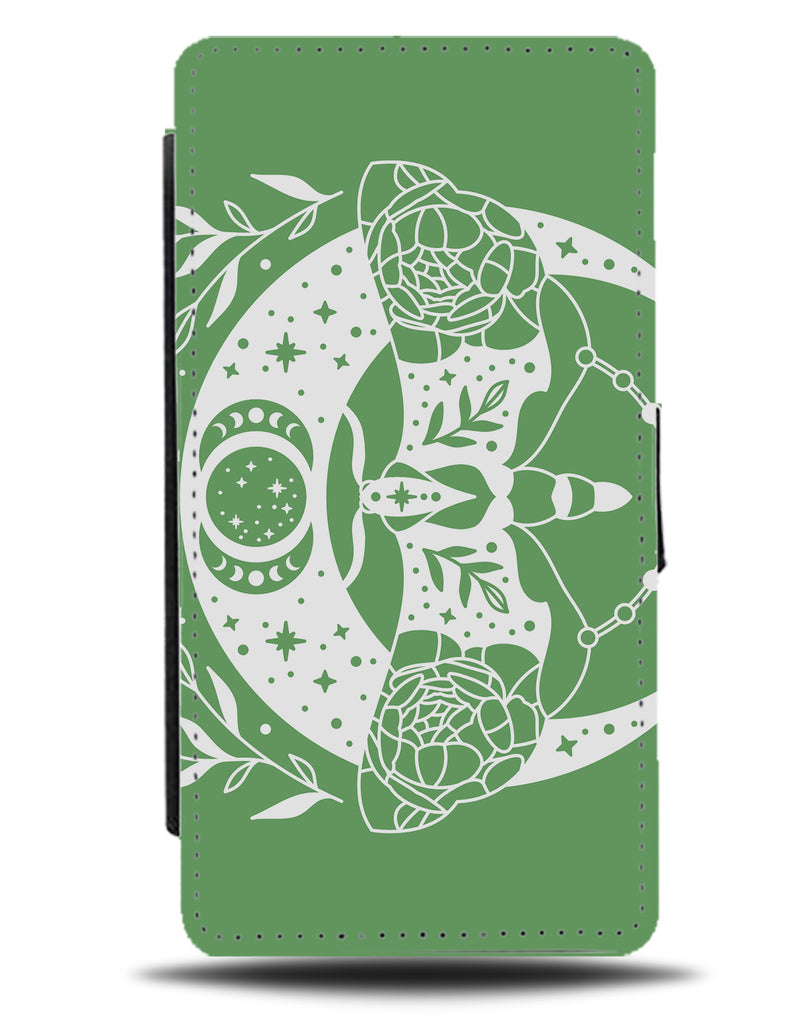 Green and White Moon Moths Flip Wallet Phone Case Moth Moons Magical Look Style P333E