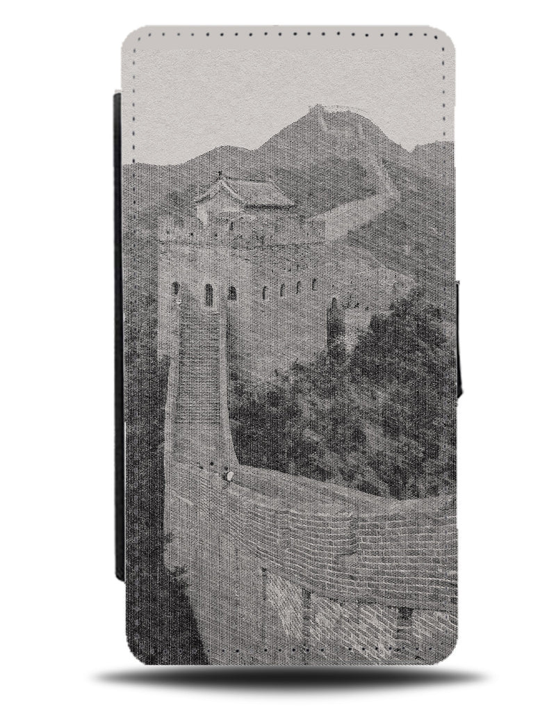 Great Wall Of China Flip Wallet Phone Case Chinese Landmark Vintage Black & White P413