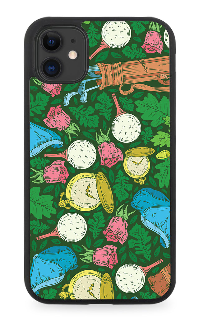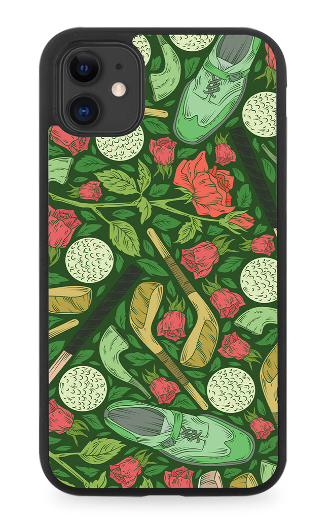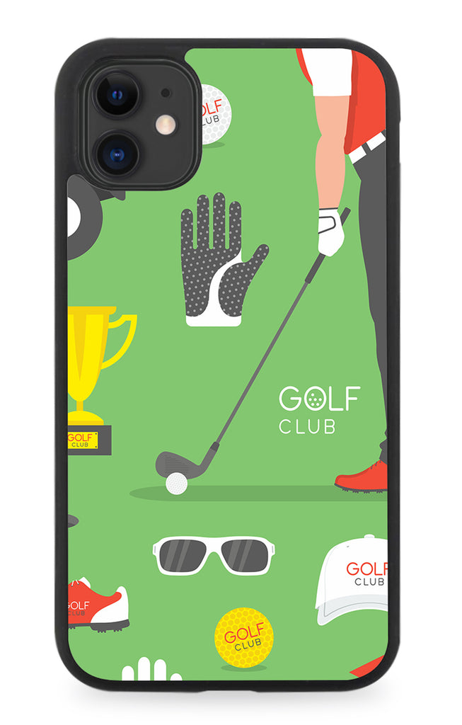 Golfing Rubber Phone Case Cover Grass Golf Pattern Bag Balls Club Equipment Mens F684