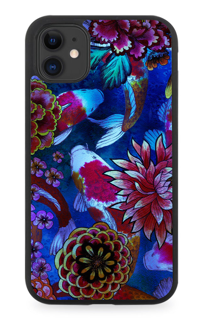 Dark Neon Moonlight Koi Fish Rubber Phone Case Cover Moon Light Night Fishes Time G167