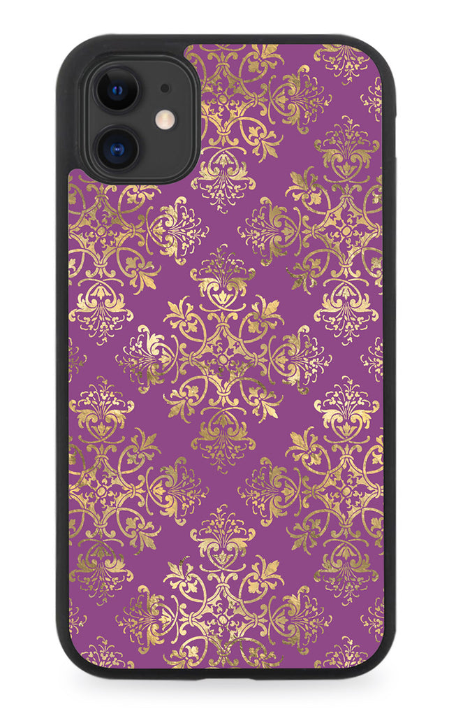 Golden Tribal Indian Floral Print On Purple Rubber Phone Case Cover Violet Lilac G217
