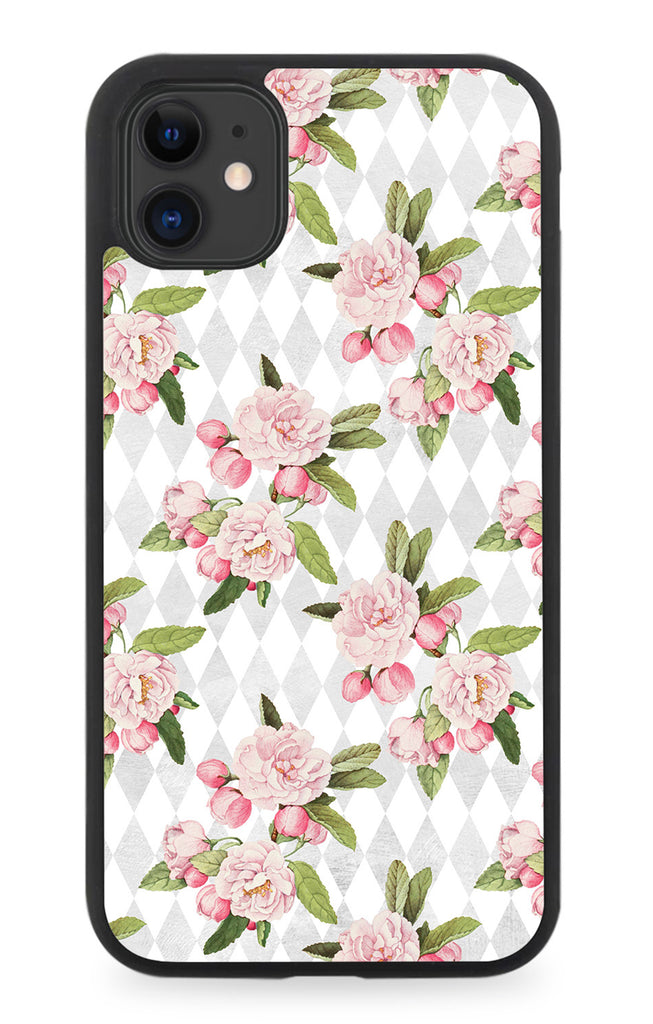 Chequered Floral Pattern Rubber Phone Case Cover Print Flowers Roses Pink Style F037