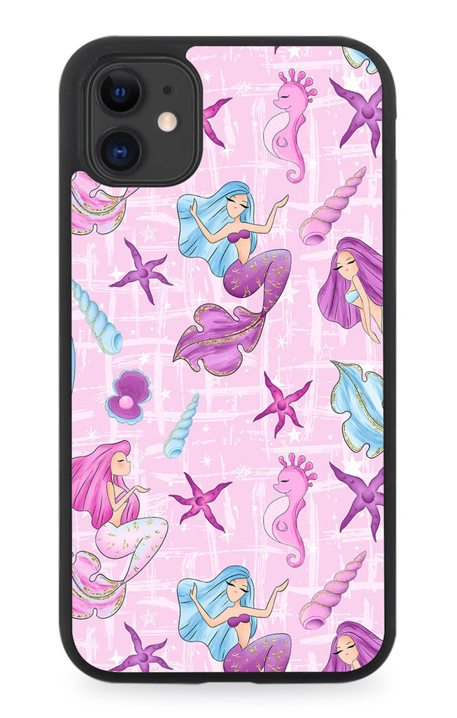 Cartoon Mermaids Rubber Phone Case Cover Seahorse Mermaid Picture Pink Girls F992
