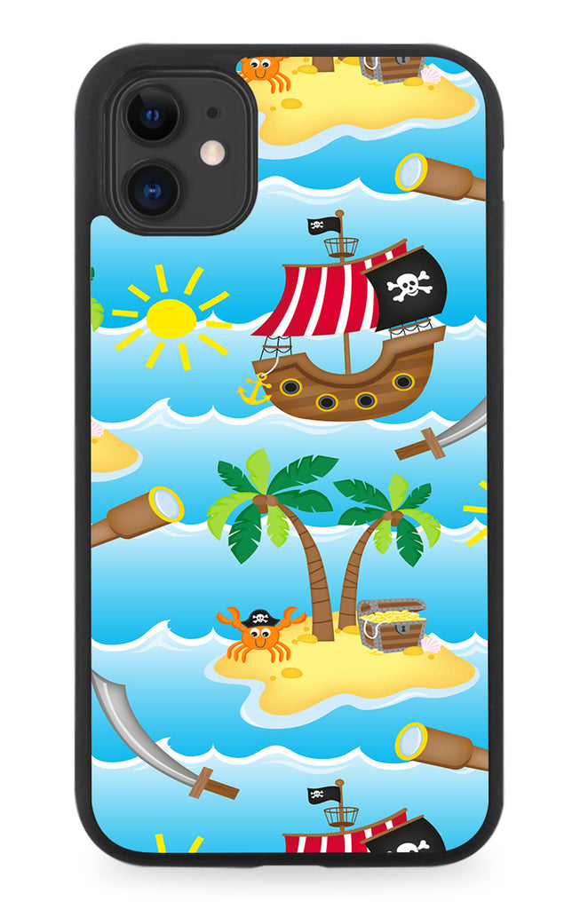 Cartoon Treasure Map Icons Rubber Phone Case Cover Pirate Ship Kids Boys Childrens G271