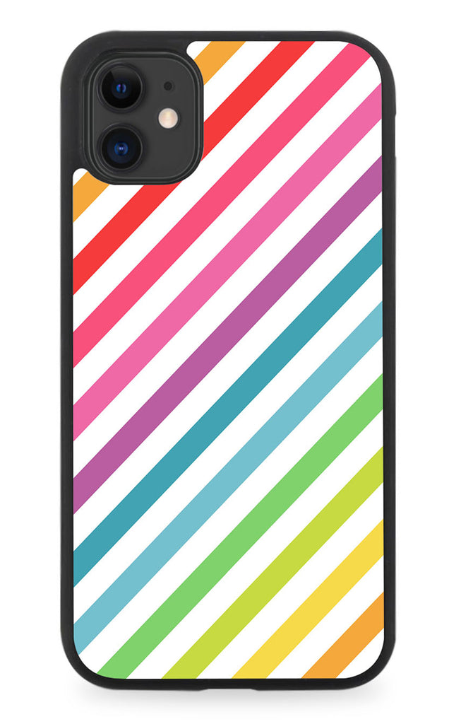 Colourful Diagonal Corner To Corner Stripes Rubber Phone Case Cover Multicoloured G433
